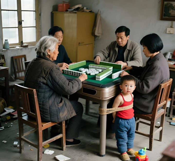 有一些奶奶特别沉迷打麻将,甚至带着孩子到麻将馆,她在旁边摸麻将,小小的孩子就在乌烟瘴气的麻将桌里面睡觉,或者是在麻将桌玩耍。